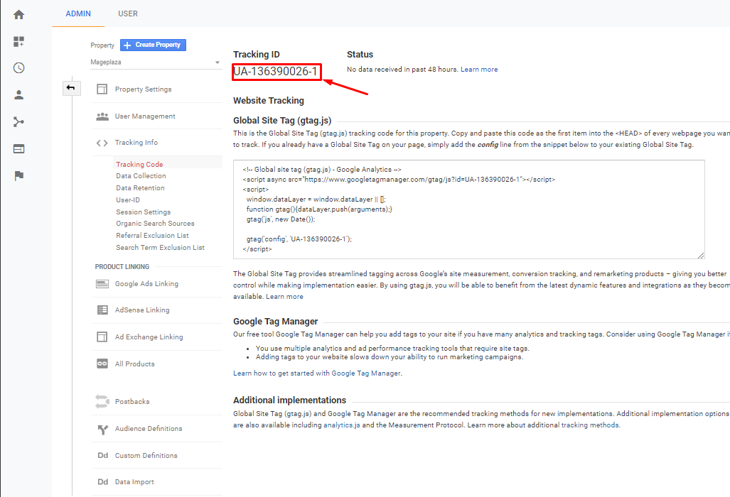 - If the registration is successful, we will see the following interface, and get GA Tracking ID to install in your store.
