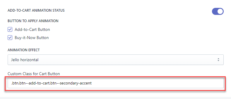 In case the animation effect does not apply to your selected button, you need to enter the proper class of Add-to-cart button in the following box and then click Save.