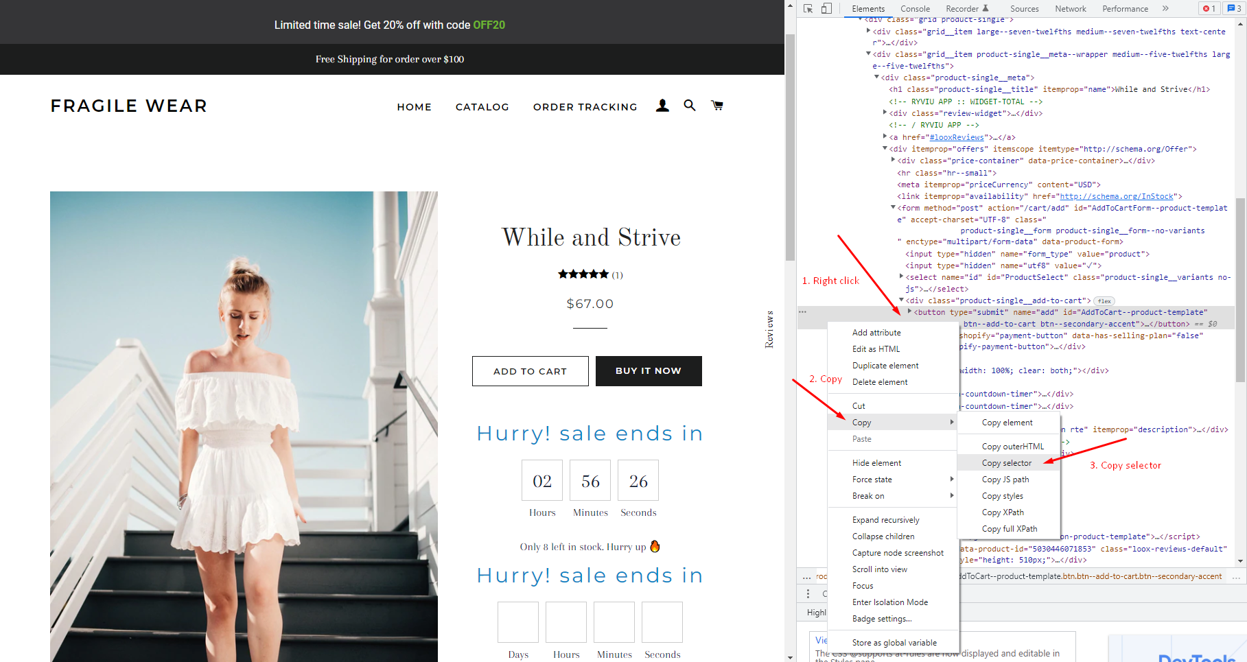 Finally, paste your result in the "Custom class for cart button" field in the app: